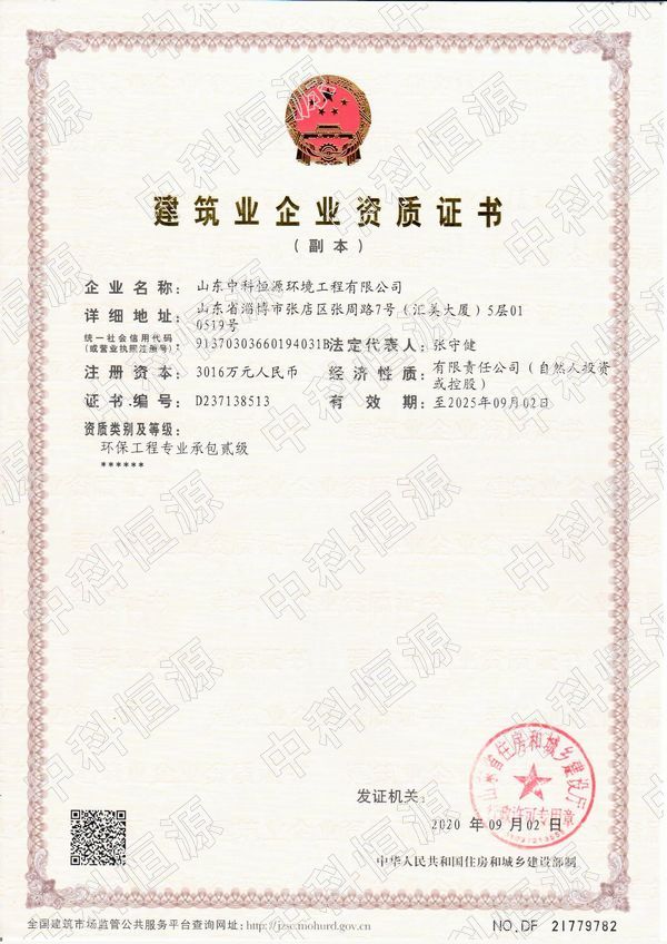 喜讯丨热烈祝贺我司晋升环保工程专业承包贰级资质